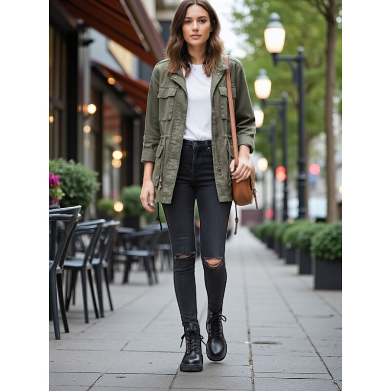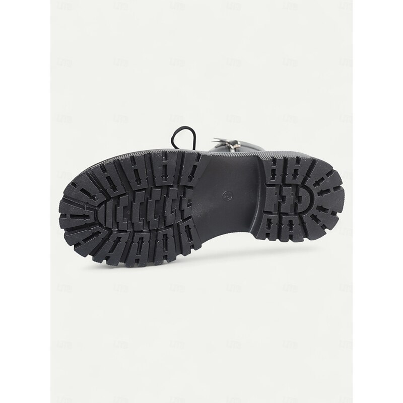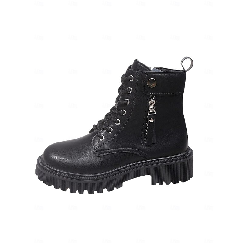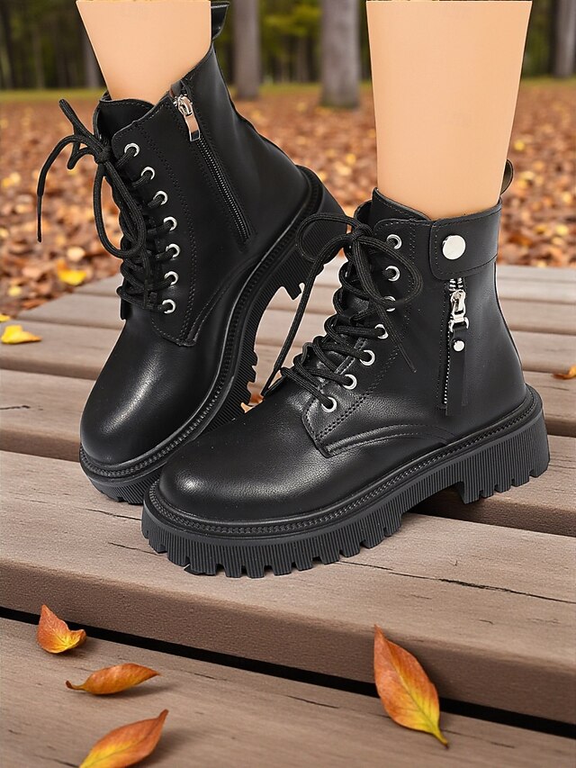 HOT ! Women's Lace-Up Combat Boots - Chunky Sole Ankle Boots with Side Zipper and Strap Detail for Urban Streetwear and Casual Fashion Outfits