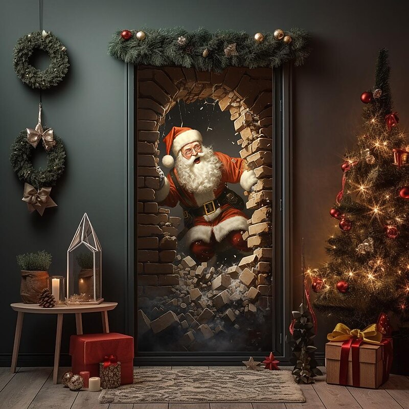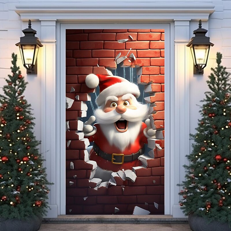 HOT ! Christmas Door Decorations Santa Breaking Wall Door Covers Door Tapestry Door Curtain Decoration Xmas Backdrop Door Banner for Front Door Holiday Party Decor Supplies