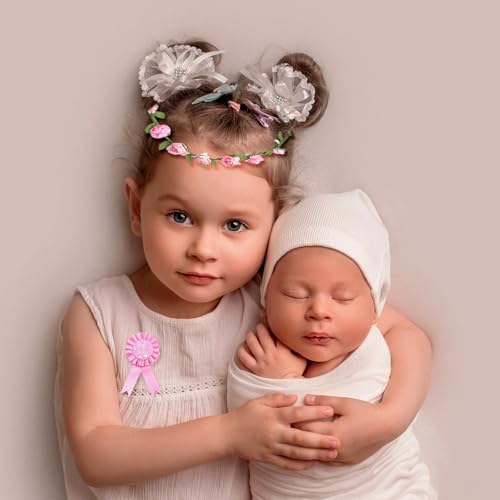 • 【Exquisite Design】The big sister sash is made of satin fabric with the words "big sister" printed on it, soft and comfortable. The size of the belt is 8.7 x 4.7 inches, and it is sewn. You can adjust the length according to your needs.The badge pin is made of ribbon, with a love shaped pattern and the words' Big Sister 'on it. The size of the pin is 6.1 x 3 inches.This handmade flower wreath is made of artificial flowers tied with iron wire, ribbons are tied at both ends to adjust the size.