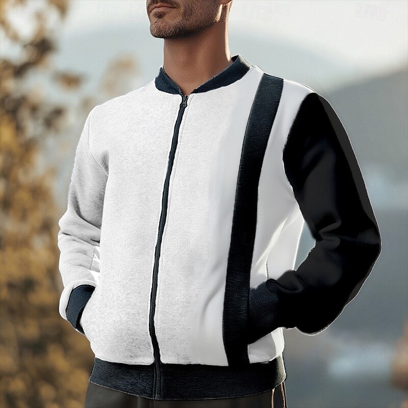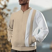 More information about Men's Sweatshirt Full Zip Sweatshirt Black White Wine Navy Blue Khaki Standing Collar Color Block Patchwork Pocket Sports & Outdoor Daily Holiday Polyester Streetwear Basic Casual Spring Fall