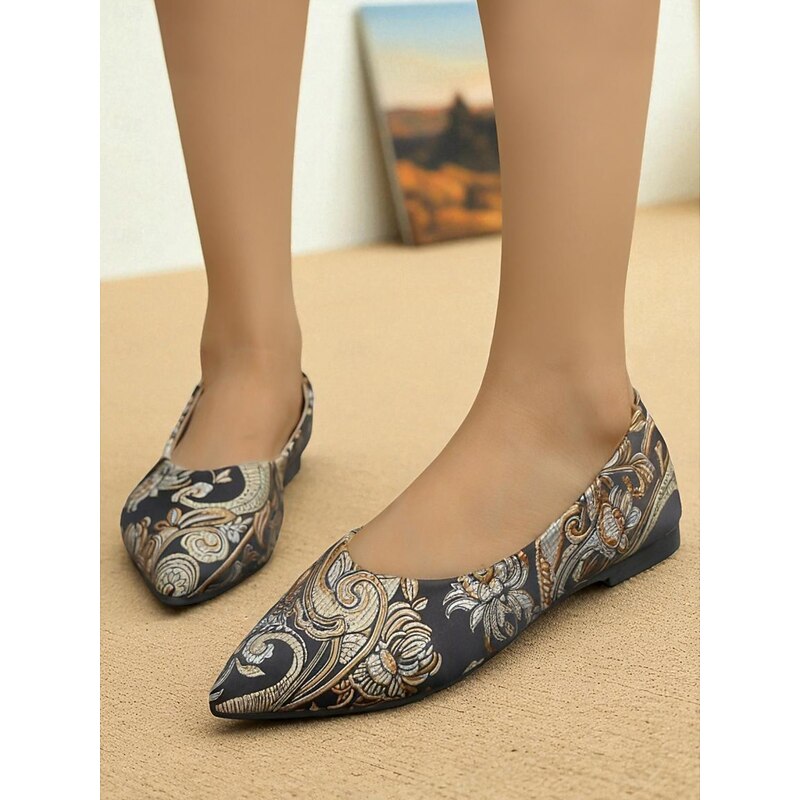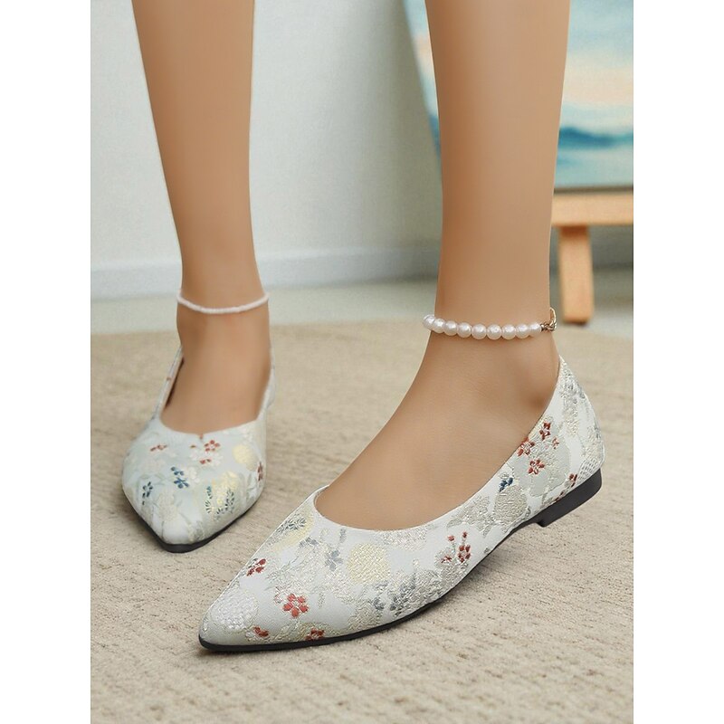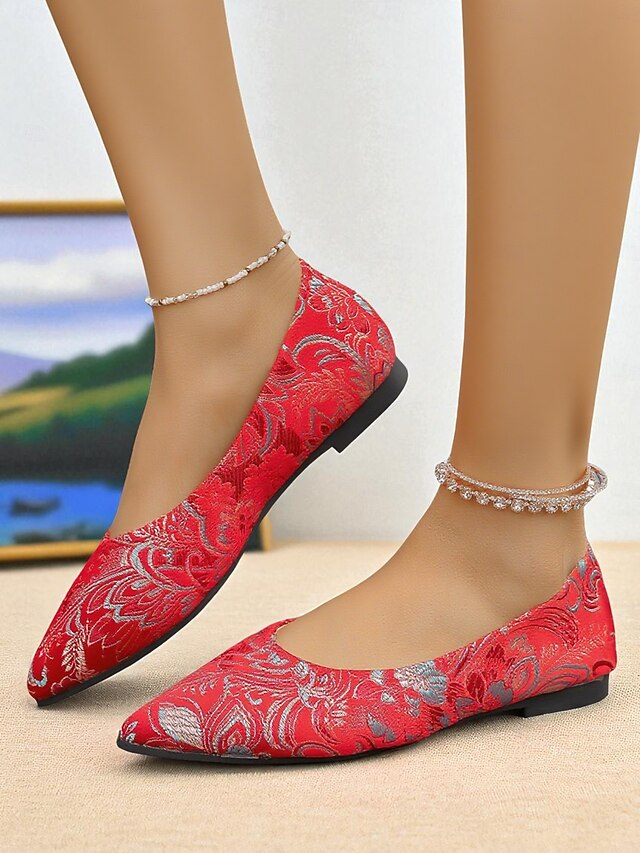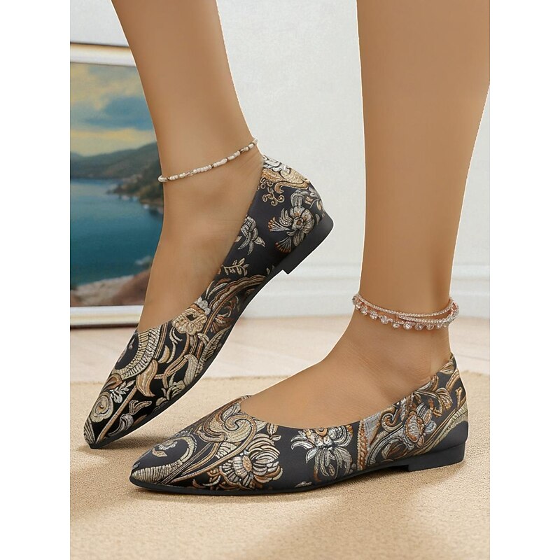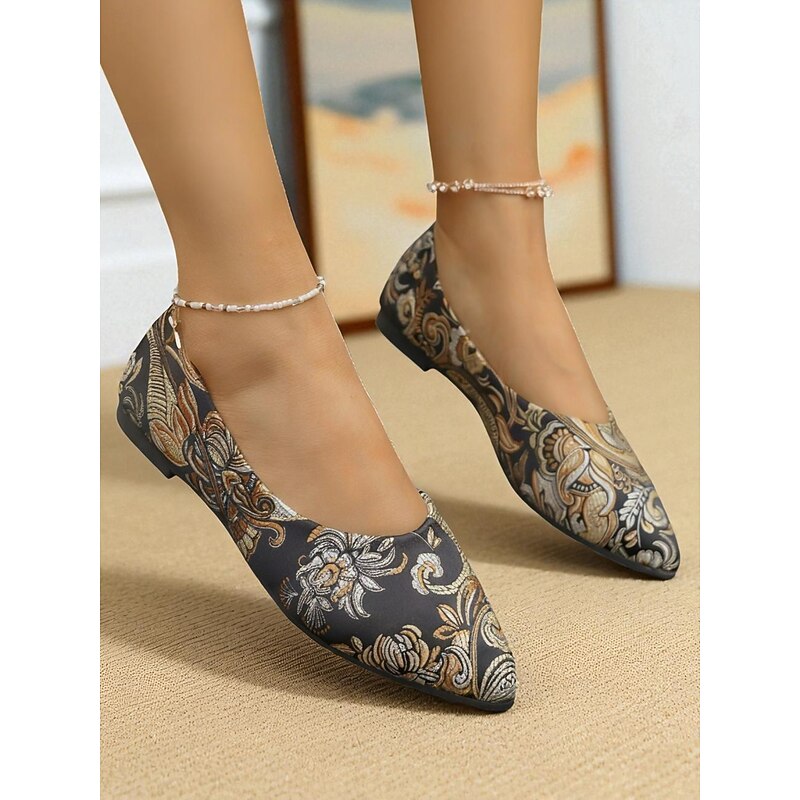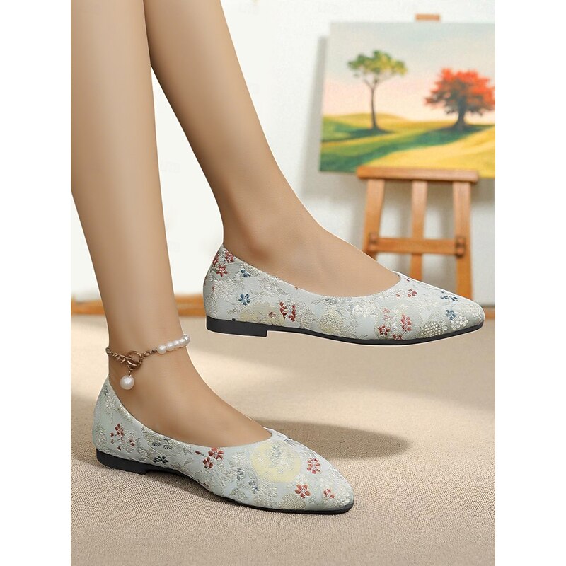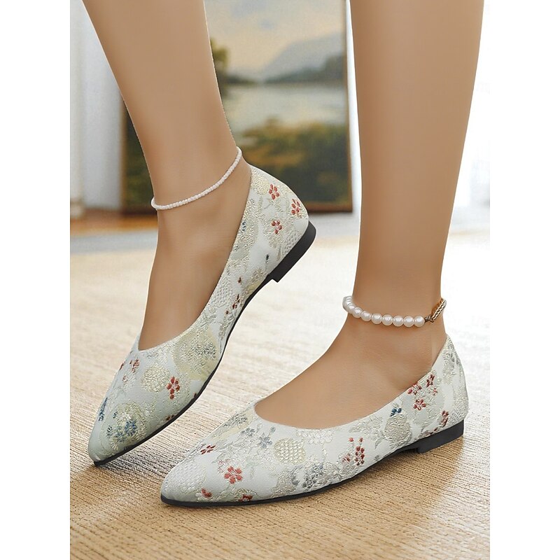 HOT ! Women's Floral Embroidered Satin Pointed - Toe Flats - Vintage - Inspired Elegant Shoes for Casual Wear and Tea Parties