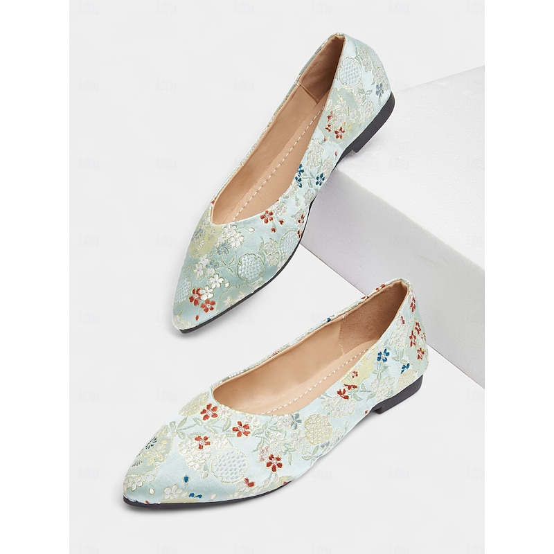 Women's Floral Embroidered Satin Pointed - Toe Flats - Vintage - Inspired Elegant Shoes for Casual Wear and Tea Parties 21