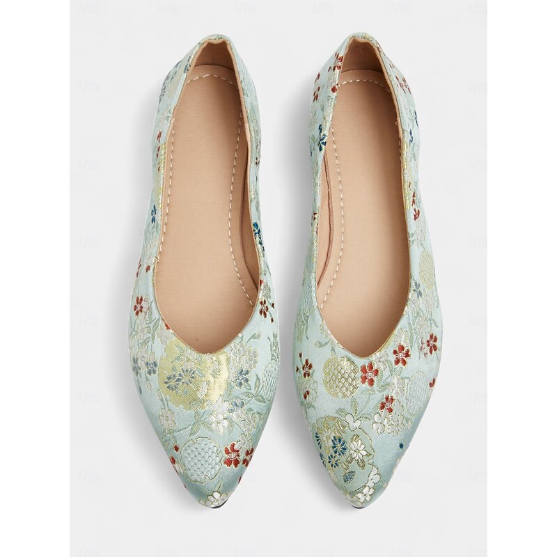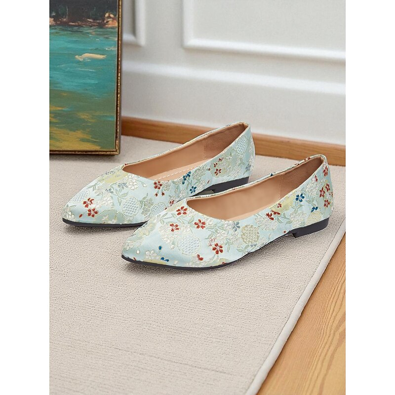 Women's Floral Embroidered Satin Pointed - Toe Flats - Vintage - Inspired Elegant Shoes for Casual Wear and Tea Parties 6