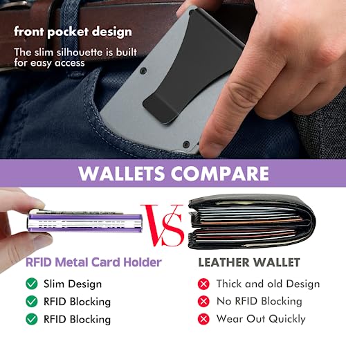 SCULPFUN 2pcs Minimalist Wallet for RFID Blocking, Slim Aluminum Metal Pocket Wallet with Money Clip, Metal Wallets for Women, Personalizable Laser Engraving (Pink+Purple) 3