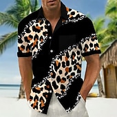 More information about Men's Geometric Leopard Print Shirt Summer Shirt Button Up Shirt Short Sleeve Fashion Casual Outdoor Vacation Dailywear Summer Spring Turndown 3D Print Collared Shirts Front One Pocket Black