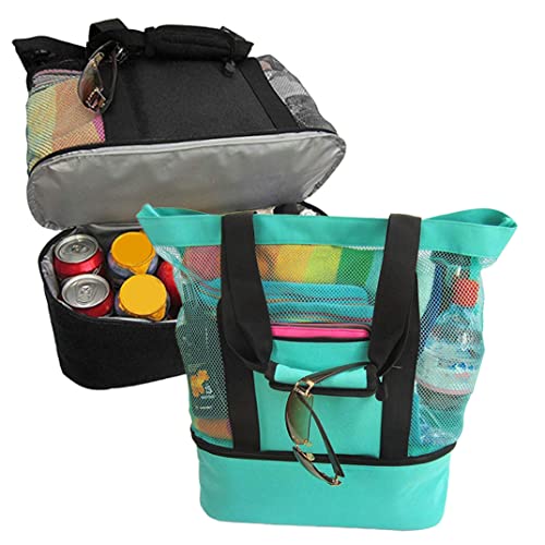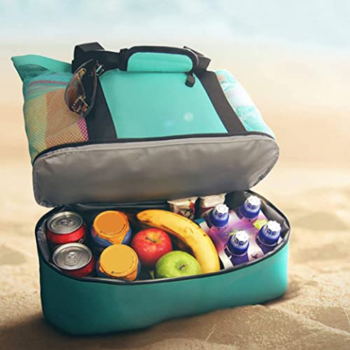 HOT ! Beach Bag with Detachable Refrigerated Compartments Refrigerated Beach Bag Summer Beach Reefer Bag Stylish Women's Beach and Pool Bag Mesh Beach Tote Bag Green,Camping Essentials