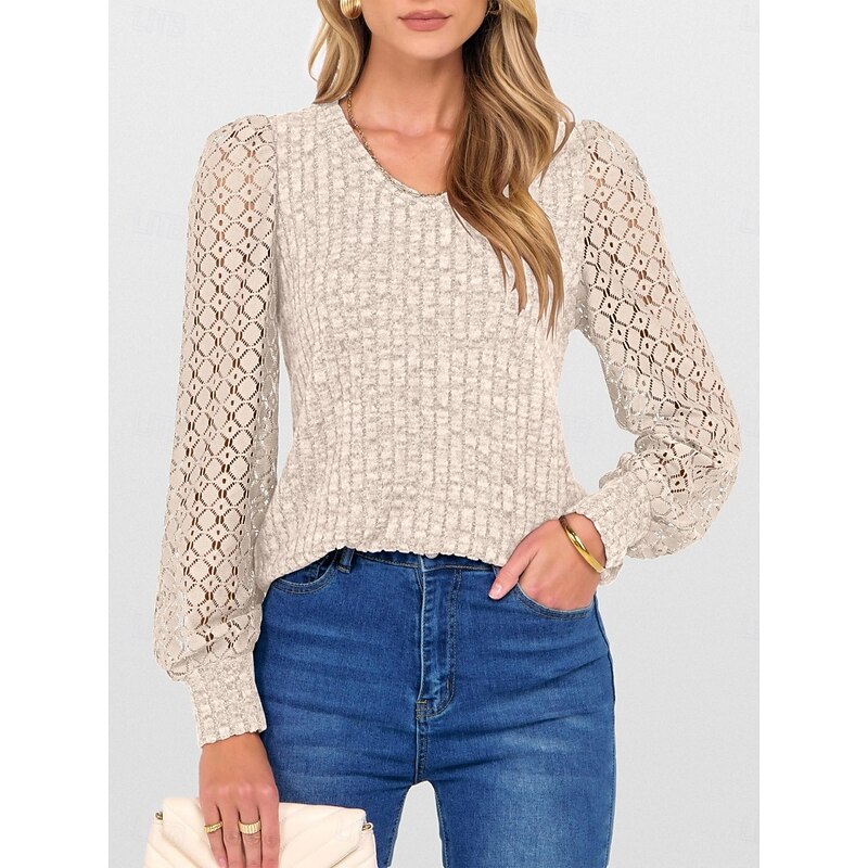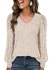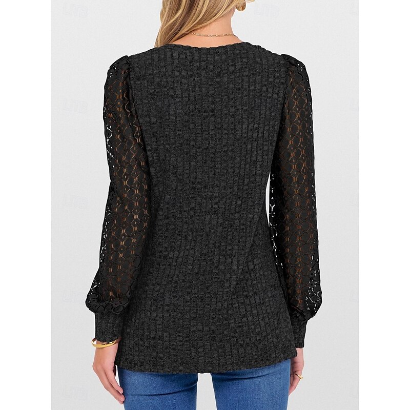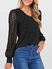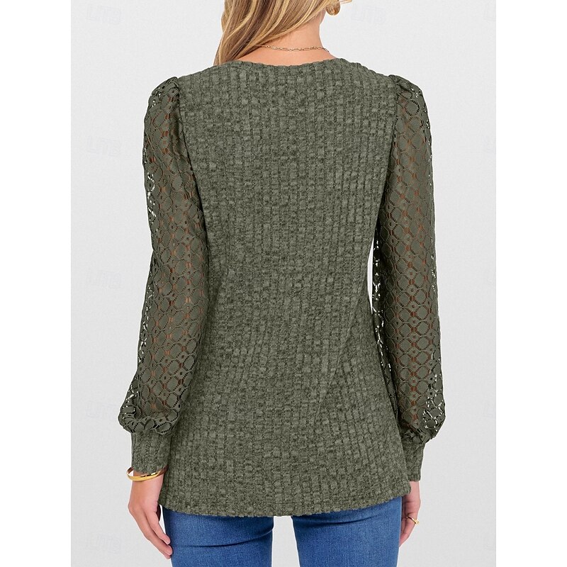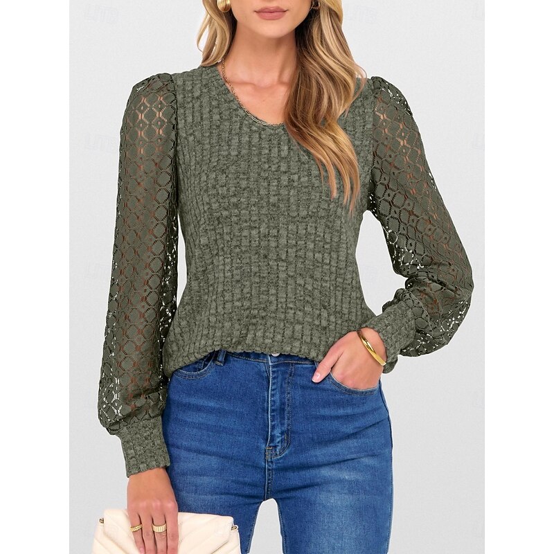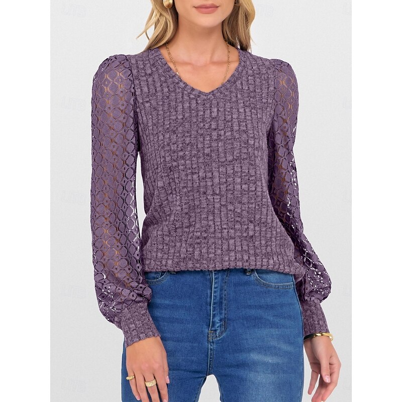 More information about Women's Lace Shirt Floral Stylish Casual Long Sleeve V Neck Regular Tops Daily Lace Patchwork Black Purple Green Khaki Spring Fall