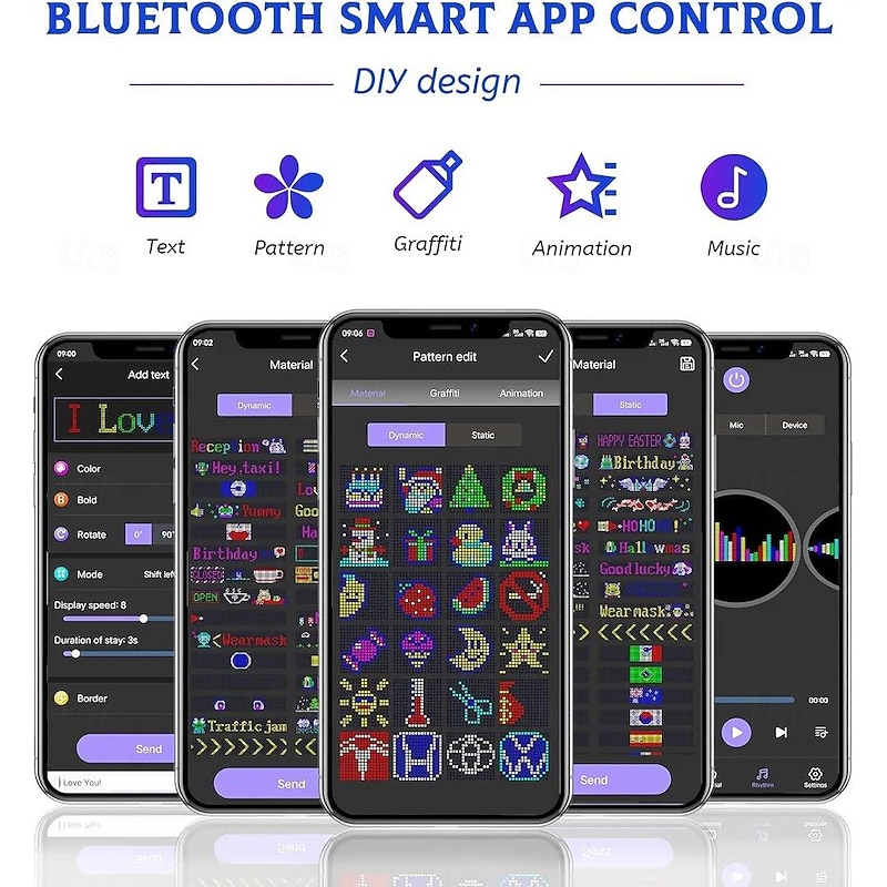 HOT ! LED Car Sign Ultra Thin Flexible LED Matrix Panel USB 5V Bluetooth Application Control DIY Programmable Scrolling LED Sign for Car Party Wedding Festival, Car Accessories