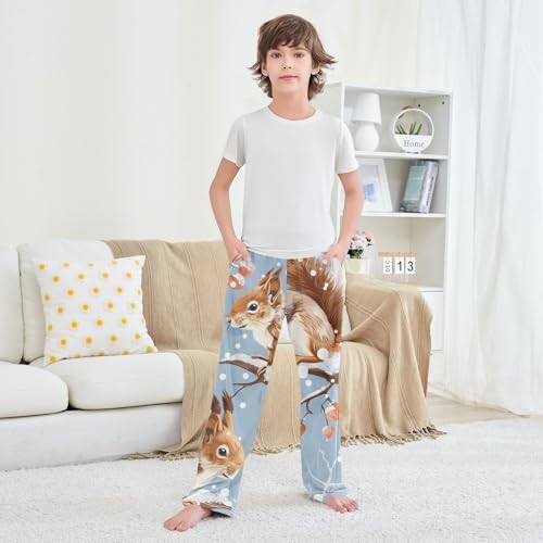 Squirrel Snowflake Berry Boys Long Pants Soft Trousers Elastic Waist Kids Lounge Bottoms with Pockets S-XL 1