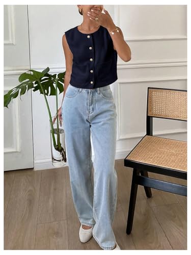 More information about GORGLITTER Women's Cropped Vest Top Sleeveless Button Down Dressy Blazer Crop Jacket with Pockets Office Work