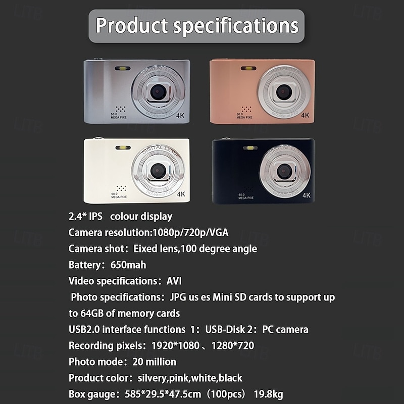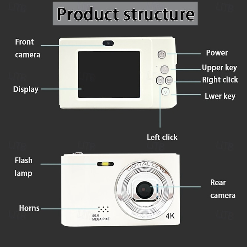$36.99 - 4K Digital Camera 50MP HD Photography Travel Selfie Cam with 2 4 Screen Entry Level Gift Mini Retro Cam for Campus selfies 2025. Shop for cheap Camera & Photo online? Buy at lightinthebox.com on sale today!