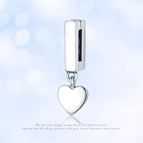 KUNSIR 925 Sterling Silver Clip-On Charm for Reflexions Mesh Bracelet Charm Bead fits Flat charm Bracelets Gift for Women(Heart Shape) 2