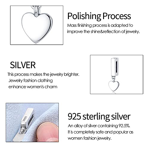 KUNSIR 925 Sterling Silver Clip-On Charm for Reflexions Mesh Bracelet Charm Bead fits Flat charm Bracelets Gift for Women(Heart Shape) 4