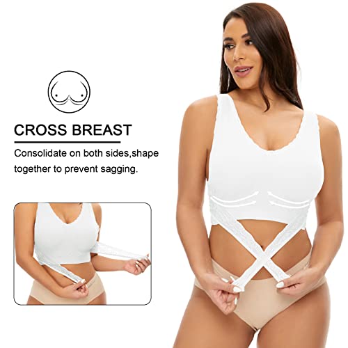 Sports Bras for Women Front Cross Front Side Buckle Bra Wireless Bra Pads Seamless Comfort Bra Yoga Bra 1/2/3 Pack 4