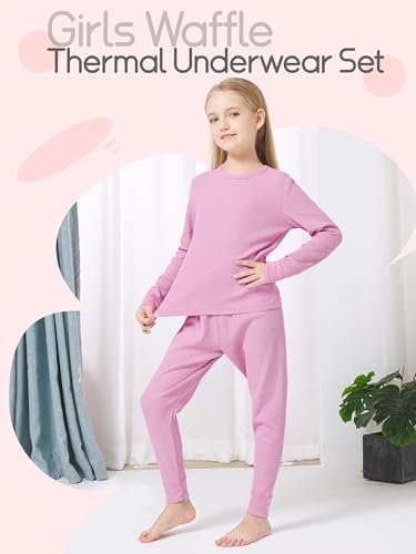VZV Thermal Underwear for Kids Girls Thermal Underwear Set Waffle Long Johns Cotton Kids Base Layer Top and Bottom for Winter 4
