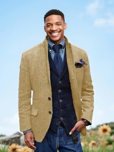 More information about Men's Herringbone Jacket Single Breasted Tweed Blazer Suit Casual Fit Sport Coat