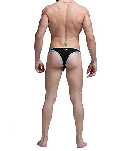 Men's Sexy G-Strings Breathe T-Back Funny Sexy Underwear Briefs (L, Black and White) … 3
