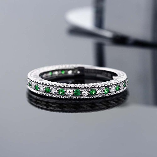 Gem Stone King Green Simulated Emerald and White Created Sapphire Ring | 925 Sterling Silver | Anniversary Wedding Band Ring For Women | 0.48 Cttw | Available In Size 5, 6, 7, 8, 9 2