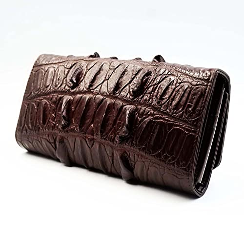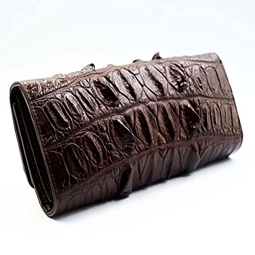 More information about New Brown Genuine Crocodile Leather Black Tail Skin Women Tri-Fold Clutch Wallet Purse.
