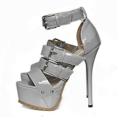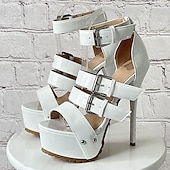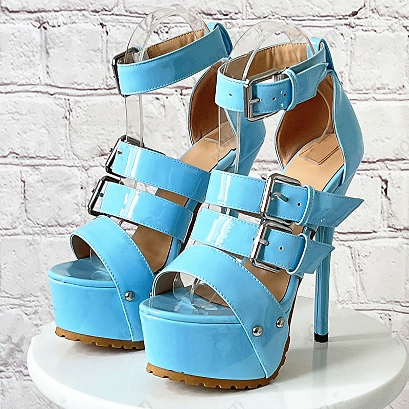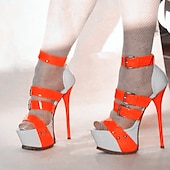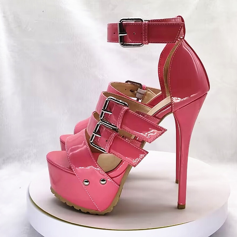 Highlights [Fabric & Material] : Crafted from a glossy patent leather, these women's high-heeled sandals reflect a sophisticated and modern style. The sleek surface adds a hint of luxury, making them an essential piece for any fashion-forward wardrobe. [Fit & Style] : Featuring a striking stiletto heel, these sandals provide impressive height and accentuate the legs, creating an elegant silhouette. The front platform design balances the heel, offering comfort and poise with every step. [Design Highlights] : The sandals are adorned with multiple straps that lace up, featuring rivets and adjustable buckles for a secure and customizable fit. These elements not only enhance the overall aesthetic but also ensure the perfect combination of support and style. [Occasions] : Ideal for daily wear and glamorous nights out at the club, these sandals are perfect for making a stylish statement. Whether you're attending a special event or enjoying a summer evening out, these shoes will elevate your look. [Size Range] : Available in sizes 36 to 43, accommodating a wide range of foot sizes. Designed to suit various preferences and ensure a perfect fit for different occasions.