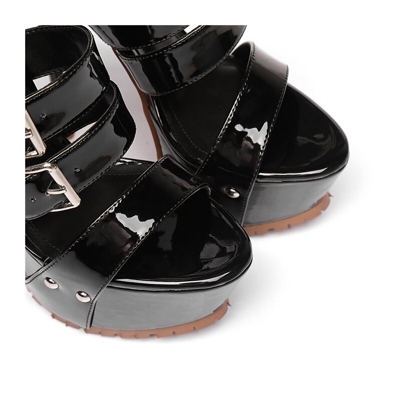 Women's Black Patent Leather Platform Stiletto Heels – Sexy High Heel Sandals with Adjustable Buckle Straps for Parties and Special Occasions 6