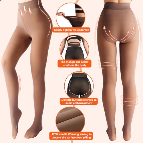 2 Pack Fleece Lined Tights Sheer Winter - Fake Translucent Tights Winter Thick Warm Pantyhose Sheer Women Leggings 4