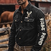 More information about Men's Cowboy Deer Work Shirt Western Shirt Cargo Shirt Long Sleeve Vintage Casual Tactical Sports & Outdoor Going out Winter Spring & Fall Turndown Print Black