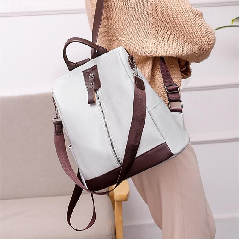 HOT ! Women's Caramel Faux Leather Convertible Backpack Purse with Front Zipper – Stylish Anti-Theft Shoulder Bag for Work, Travel, or Daily Use