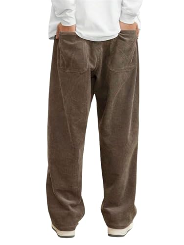 HOT ! Mens Corduroy Casual Pants, Drawstring Elastic Waist Straight Leg Sweatpants, Fashion Loose Fit Wide Leg Pants