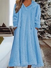 More information about Women's Midi Dress Casual Dress Winter Dress Fashion Modern Daily Weekend Regular Fit Plain Long Sleeve Hooded Light Blue Winter Autumn