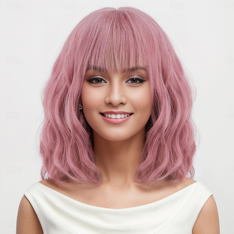 $21.99 - Synthetic Wig Water Wave Curly Weave Asymmetrical Neat Bang Machine Made Wig 14 inch A1 Synthetic Hair Women's Party Classic Comfortable Pink 2025. Shop for cheap Synthetic Trendy Wigs online? Buy at lightinthebox.com on sale today!