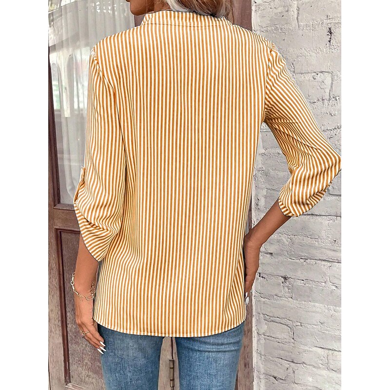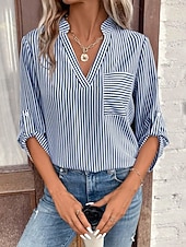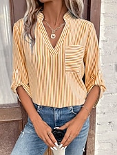 More information about Women's Shirt Blouse Casual Striped Pocket Print Long Sleeve Regular Tops V Neck Daily Black Yellow Red Royal Blue Spring & Summer
