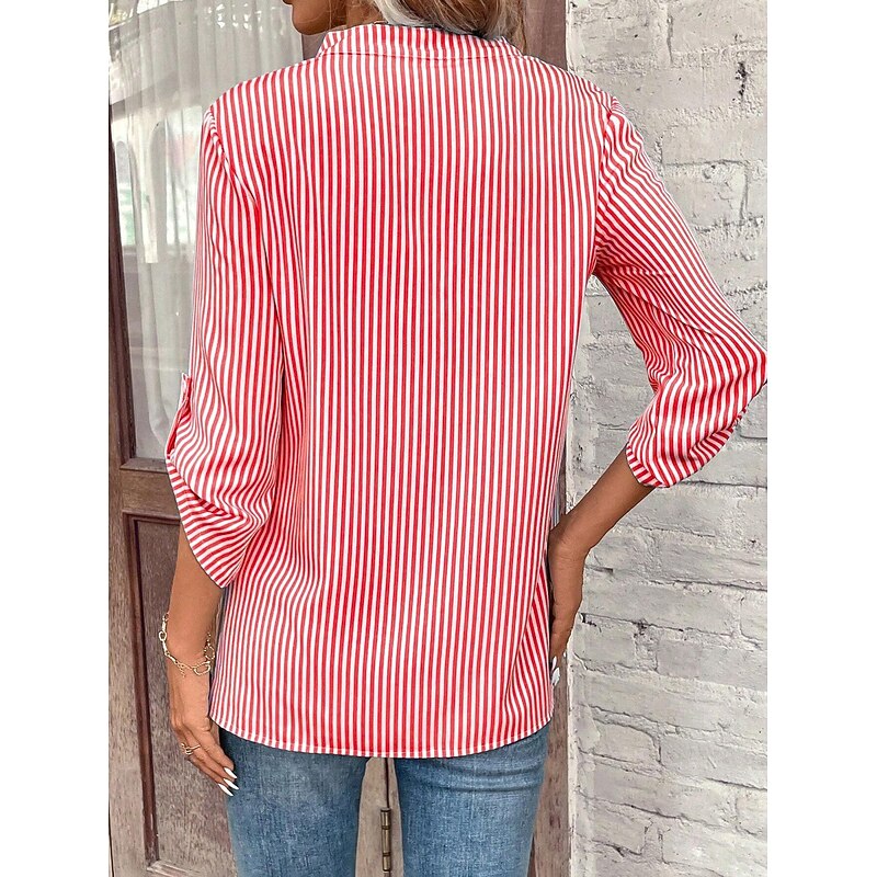 Women's Shirt Blouse Casual Striped Pocket Print Long Sleeve Regular Tops V Neck Daily Black Yellow Red Royal Blue Spring & Summer 9