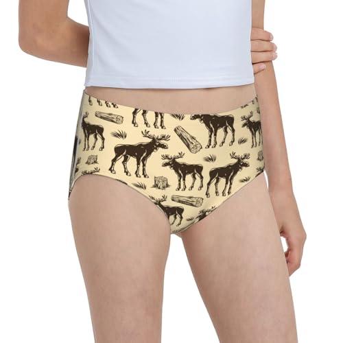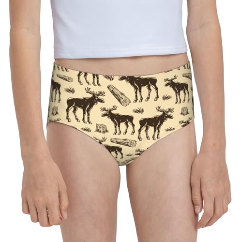 Vintage Moose And Wood Logs Girls' Underwear Soft Cotton Little Girls Panties Comfort Briefs 6