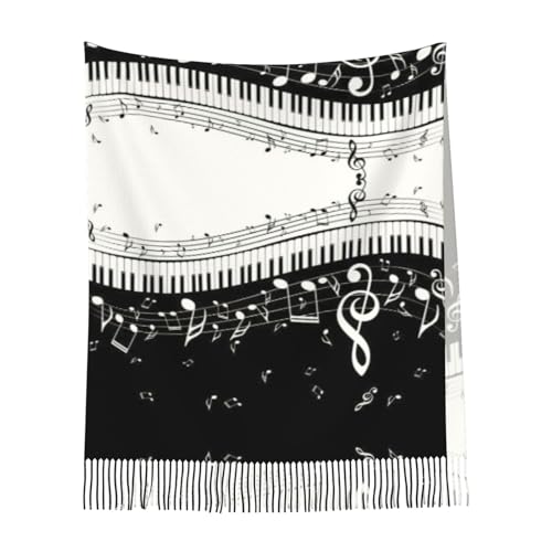 Piano Keys with Musical Notes print Oversized winter tassel shawl Scarf Fashion tassel shawl with styling 1