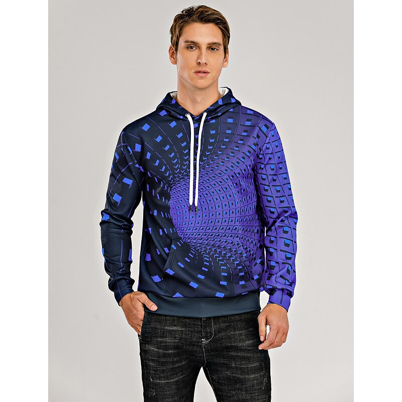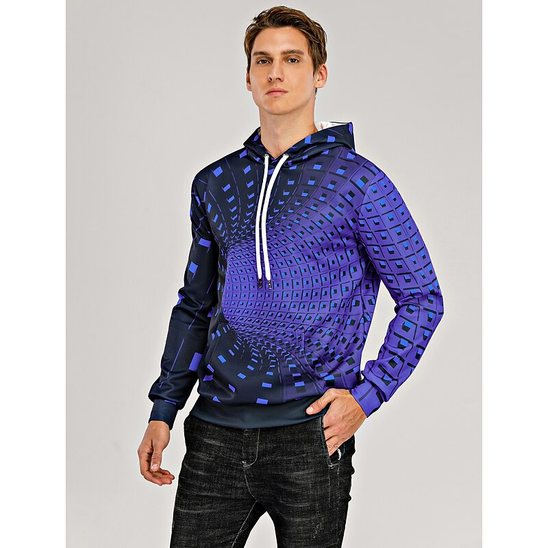 Highlights [Fabric:] This men's hoodie is crafted from a blend of spandex and polyester, ensuring a comfortable stretch and a cozy fit. The material is breathable and durable, making it suitable for everyday wear. [Fit and Style:] The hoodie offers a regular fit that balances comfort and style, providing a flattering look without being too tight or too loose. It features a classic pullover design with a practical drawstring hood and a kangaroo pocket for storage or hand warmth. [Design Highlights:] The standout feature of this hoodie is its geometric color block pattern with a 3D print, creating an optical illusion effect that captures attention. This modern design, combined with the variety of vibrant color options—green, black, red, purple, yellow, and royal blue—adds a unique flair to your wardrobe. [Occasion:] This hoodie is perfect for a range of occasions—whether it’s for casual daily wear, holiday festivities, or streetwear styling. Its bold pattern and comfortable design make it an excellent choice for those looking to make a statement in any setting. [Size Range:] Available in a wide size range from S to 3XL, this hoodie accommodates various body types, offering a comfortable and stylish option for many.