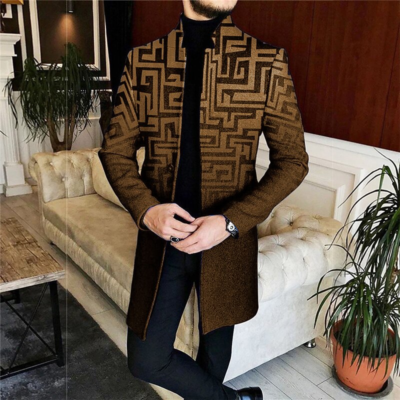 More information about Men's Geometry Winter Coat Overcoat Coat Warm Comfortable Breathable Business Casual Work Wear to work Going out Pocket Print Fall & Winter Stand Collar Long Sleeve Yellow Red Blue