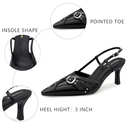 More information about MAVMAX Slingback Heels for Women Studded Pointed Toe Kitten Heels Pumps Buckle Stiletto Backless Heeled Sandals Wedding Party Dress Shoes