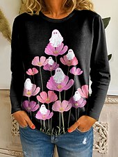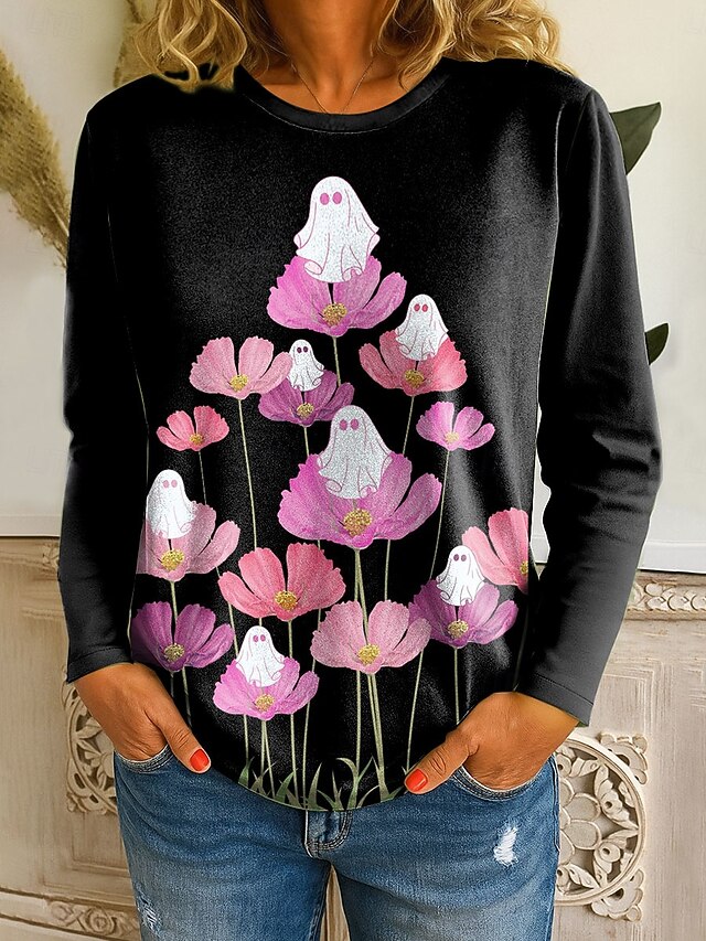 More information about Halloween Women's T shirt Ghost Floral Graphic Vintage Fashion Stylish Long Sleeve Crew Neck Round Neck Regular Tops Daily Print Pink Blue Orange Green Fall Winter