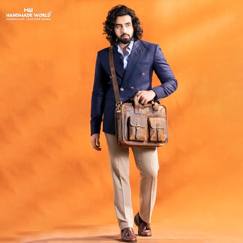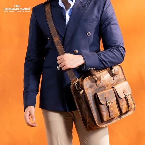 Handmade World Leather Laptop Briefcase Messenger Bag For Men Women 'Arthur Travel' Fits 15 Inch Computer Crossbody Satchel Bag For Office Work