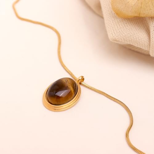 HOT ! Sonateomber Gold Stone Pendant Necklace for Women, Chunky Statement Oval Natural Gemstone Dangle Necklaces Wedding Prom Accessories Fashion Jewelry Gift