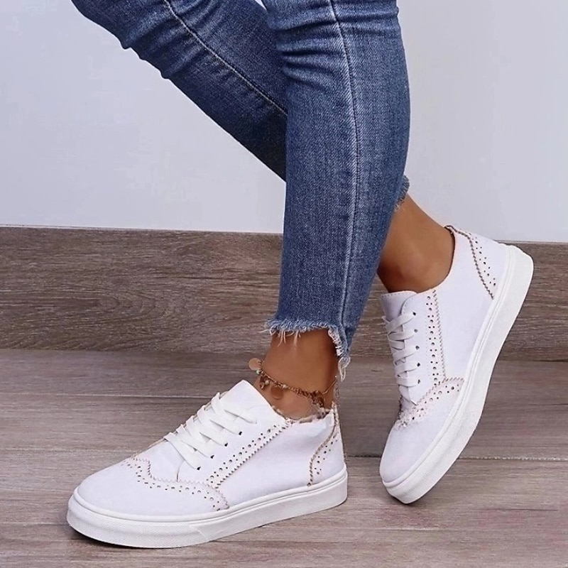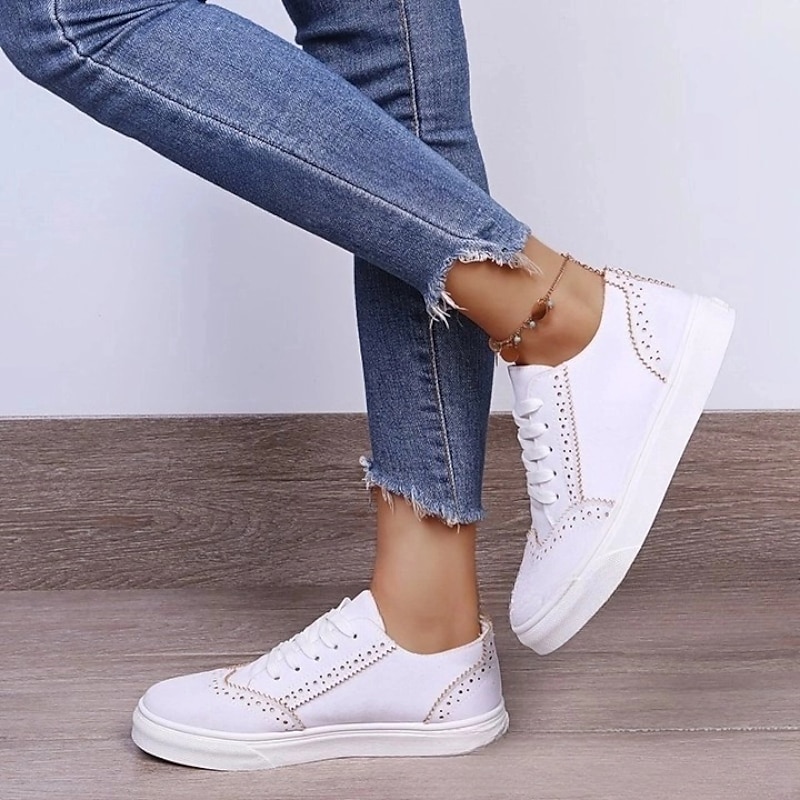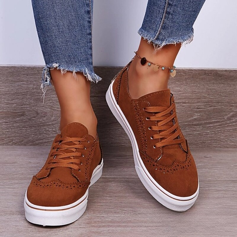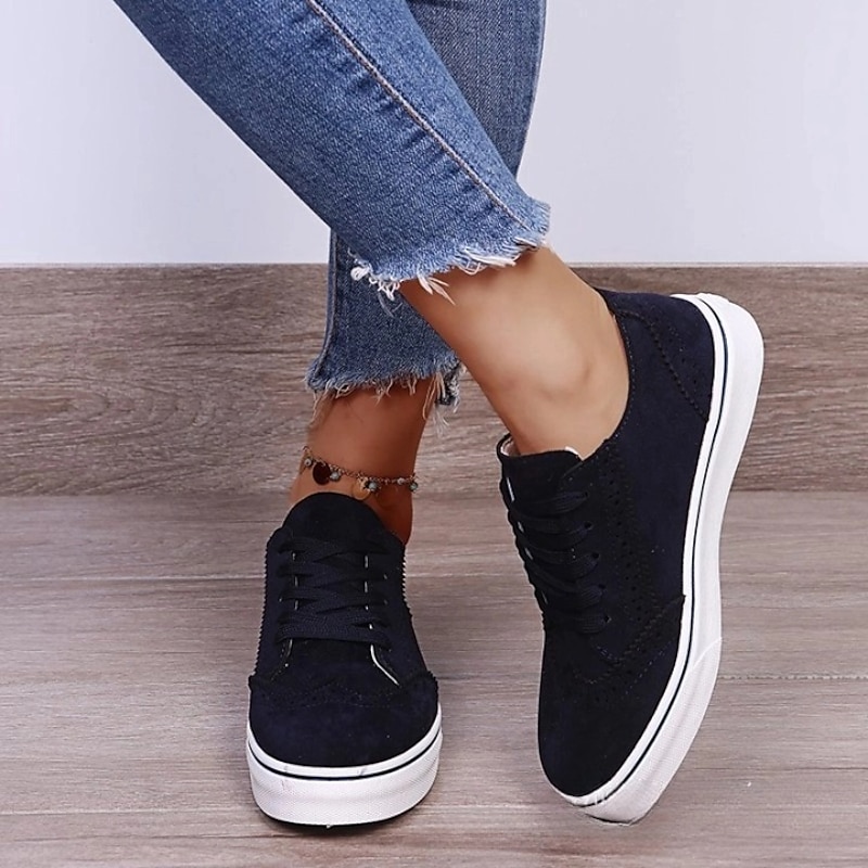 Highlights [Fabric & Material] : Crafted from premium PU leather, these sneakers boast a smooth and durable suede-like texture. The dark green shade adds a sophisticated and unique flair, perfect for elevating your casual wardrobe. [Silhouette & Fit] : Featuring a classic round toe and flat heel, these sneakers provide a comfortable and sleek fit. The lace-up closure ensures a secure and customizable fit, making them suitable for various foot shapes. [Design Highlights] : The standout design includes clean, white rubber soles that contrast beautifully with the dark green upper, adding a modern twist to the classic sneaker look. The slightly elevated sole enhances comfort and support during all-day wear. [Occasions & Usage] : Ideal for daily wear, these sneakers are perfect for walking, casual outings, and outdoor activities. Their versatile style allows them to complement a wide range of outfits, from sporty to casual chic. [Size Information] : Available in sizes 36 to 43, it is suggested to select one size smaller than usual for the best fit. These sneakers cater to women seeking both style and comfort in their everyday footwear.
