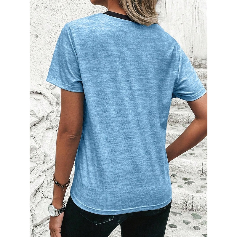 Women's T Shirt Casual Color Block Print Short Sleeve Regular Tops Round Neck Daily Sky Blue Khaki Gray Summer 8