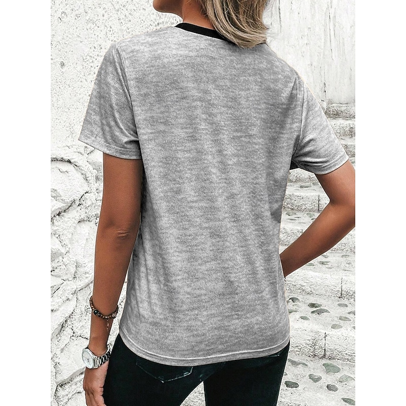 Women's T Shirt Casual Color Block Print Short Sleeve Regular Tops Round Neck Daily Sky Blue Khaki Gray Summer 1