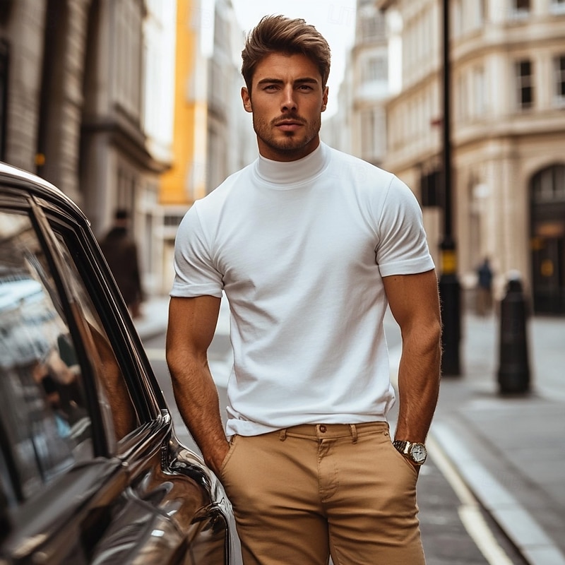 More information about Men's T Shirt Turtleneck shirt Short Sleeve Stand Collar Summer Spring Plain Fashion Casual Comfortable Classic Style Vacation Street Holiday Black Gray Green Top Tee for Men