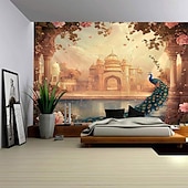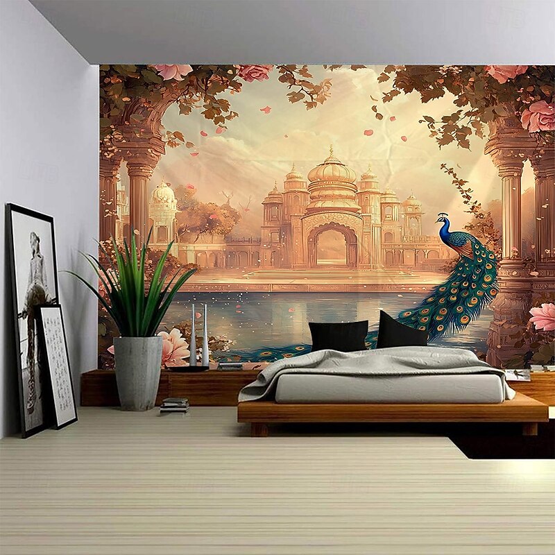 HOT ! Beautiful Flowers Peacock Castle Architectural Landscape Hanging Tapestry Mural Art Large Tapestry Mural Decoration Photos Background Carpet Curtains Home Bedroom Living Room Decoration