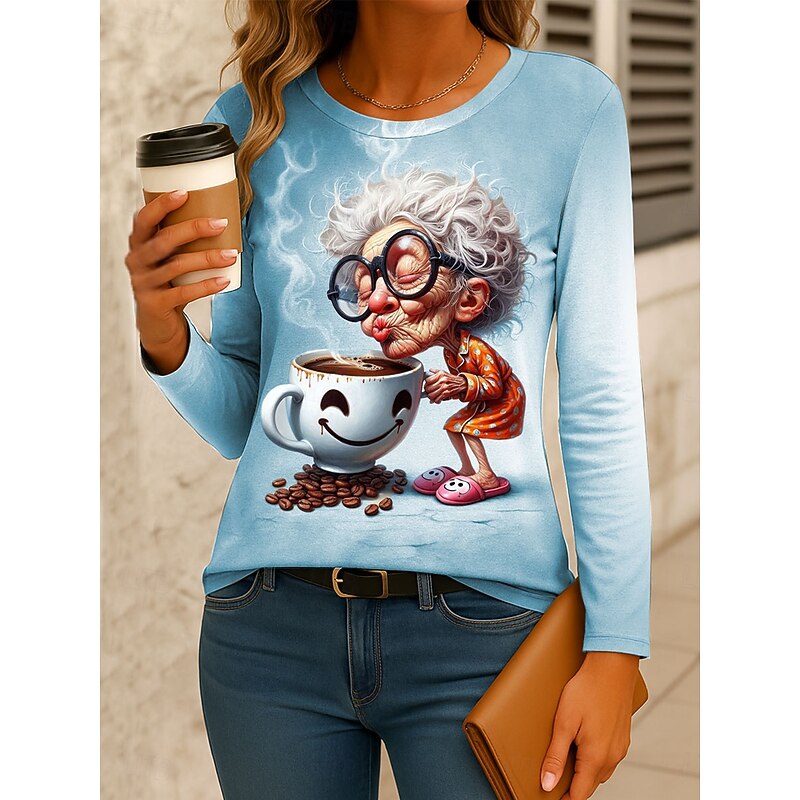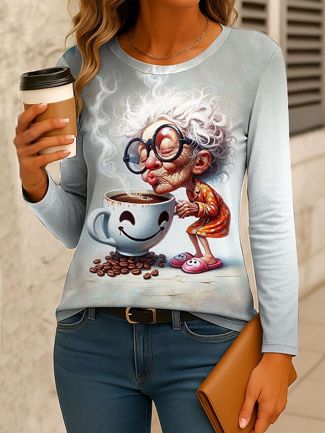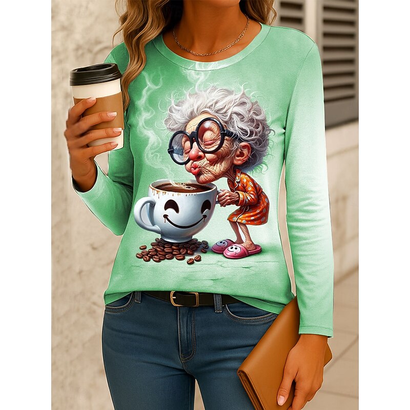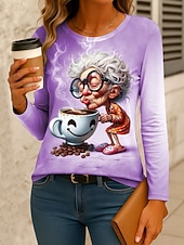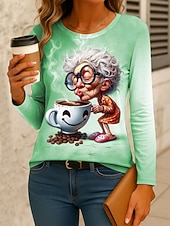 Why Choose Women's T Shirt Graphic Cartoon Gradient Vintage sleek traditional Long Sleeve Crew Neck Regular Tops Daily Print Pink Blue Purple Green Gray Spring Fall Winter?