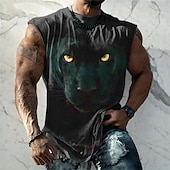 Highlights [Fabric] : Crafted from a soft, breathable polyester with micro-elasticity, this men's t-shirt ensures comfort and ease of movement, making it suitable for warm spring and summer days. [Fit] : Featuring a regular fit, the sleeveless design allows for a full range of motion, ideal for both casual daily wear and intense gym sessions. [Design Highlights] : The striking 3D print of a black panther with vibrant green eyes stands out against the fabric, adding a bold, fashionable edge to any outfit. The crew neck and cap sleeve options provide versatile style choices. [Occasions] : Perfect for daily activities, sports, and gym workouts, this graphic vest top seamlessly combines style with functionality, catering to men seeking a modern and distinctive look. [Size Range] : Available in a wide range of sizes from S to 3XL, ensuring a suitable fit for various body types and preferences.