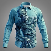 HOT ! Halloween Men's Zombies Horror Mummy Shirt Button Up Shirt Long Sleeve Dark Gothic Style Holiday Streetwear Spring Fall Turndown 3D Print Collared Shirts Light Green Blue Purple Green