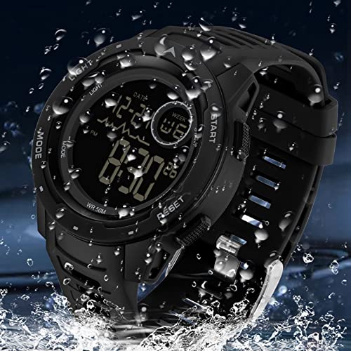 • Digital Watch with Hourly time, Date/Week, Stopwatch, Alarm, 12/24 hour formart, Shockproof, IP68 Waterproof, LED Backlight, Press"LIGHT"button to see the time clearly in the light, easy to read